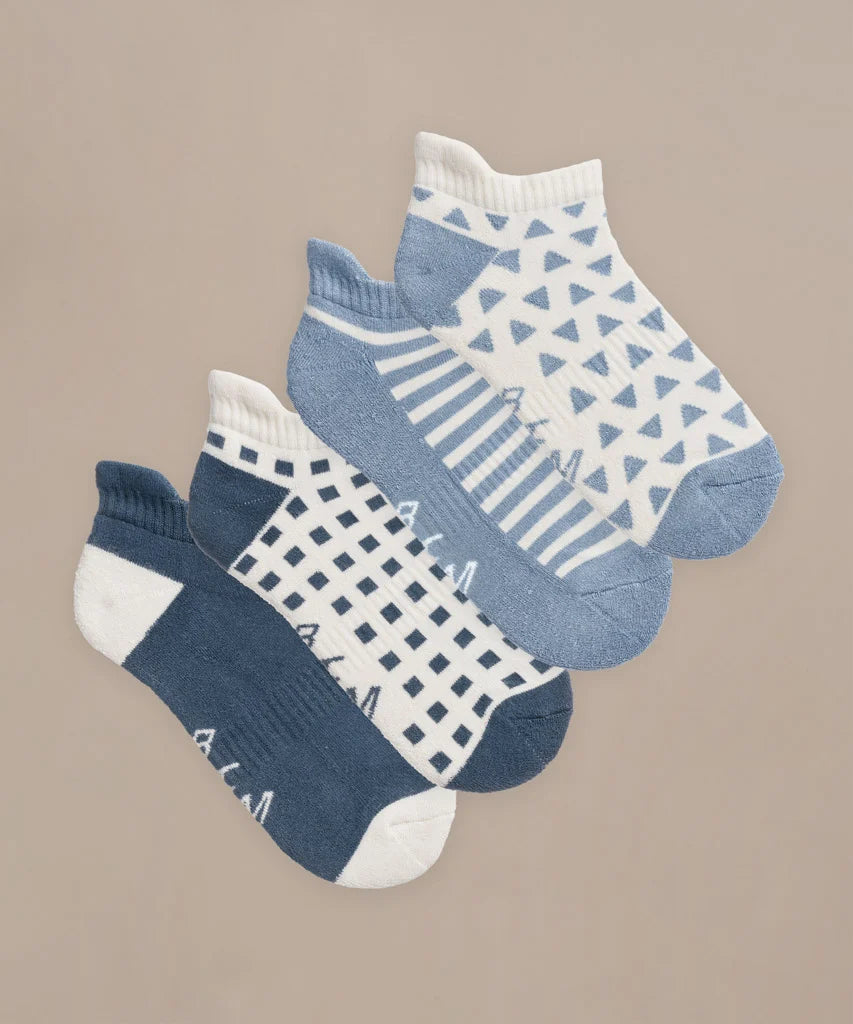 Bamboo Trainer Socks in Blue/Crema by BAM - 4 Pack