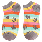 Paw Prints and Stripes Bamboo Trainer Socks in Brights Miss Sparrow, Size UK 4-7