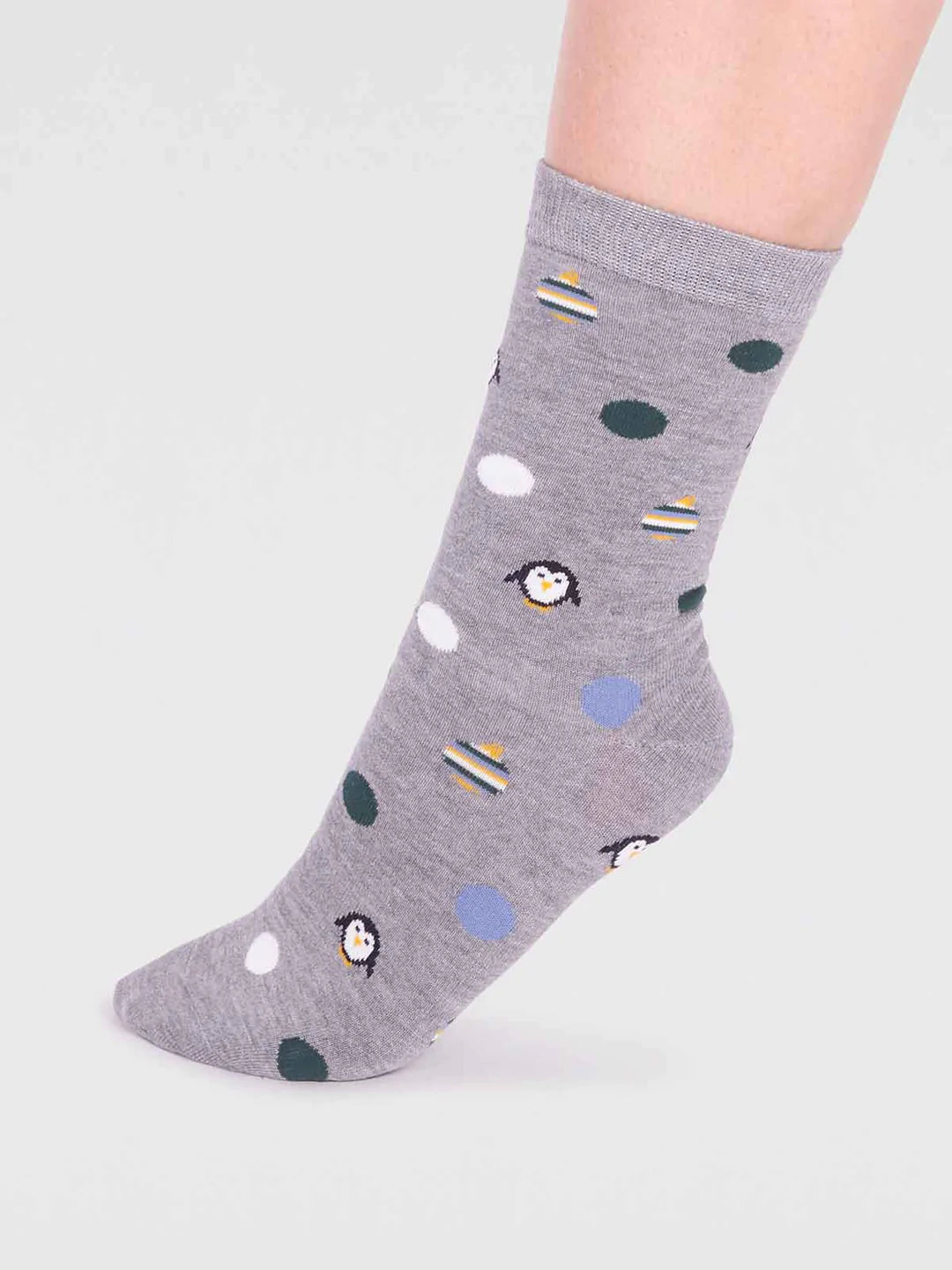 Neva Bamboo Penguin Socks in Grey Marle by Thought, Size 4-7