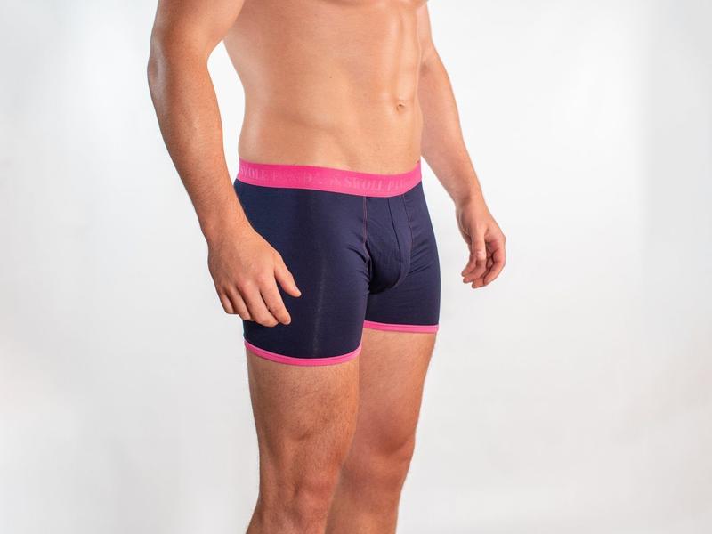 Men's Bamboo Boxers by Swole Panda - Navy/Pink Band