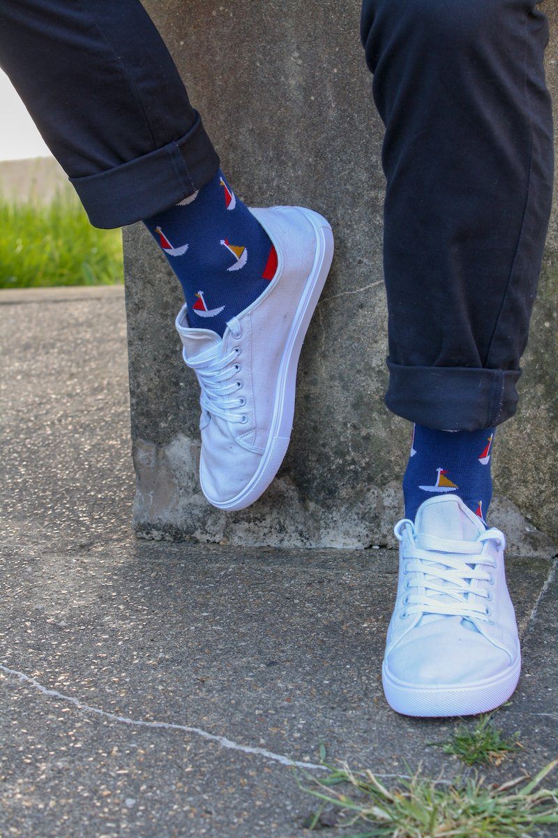 Sailing Boat Bamboo Socks by Swole Panda, Size 7-11