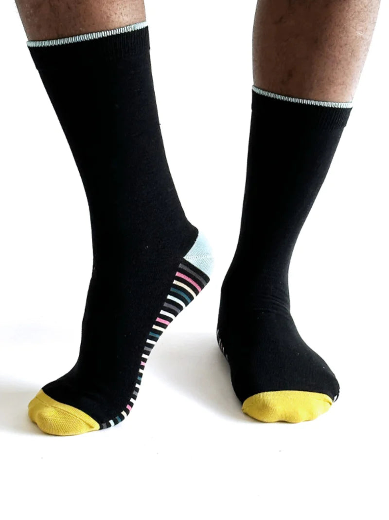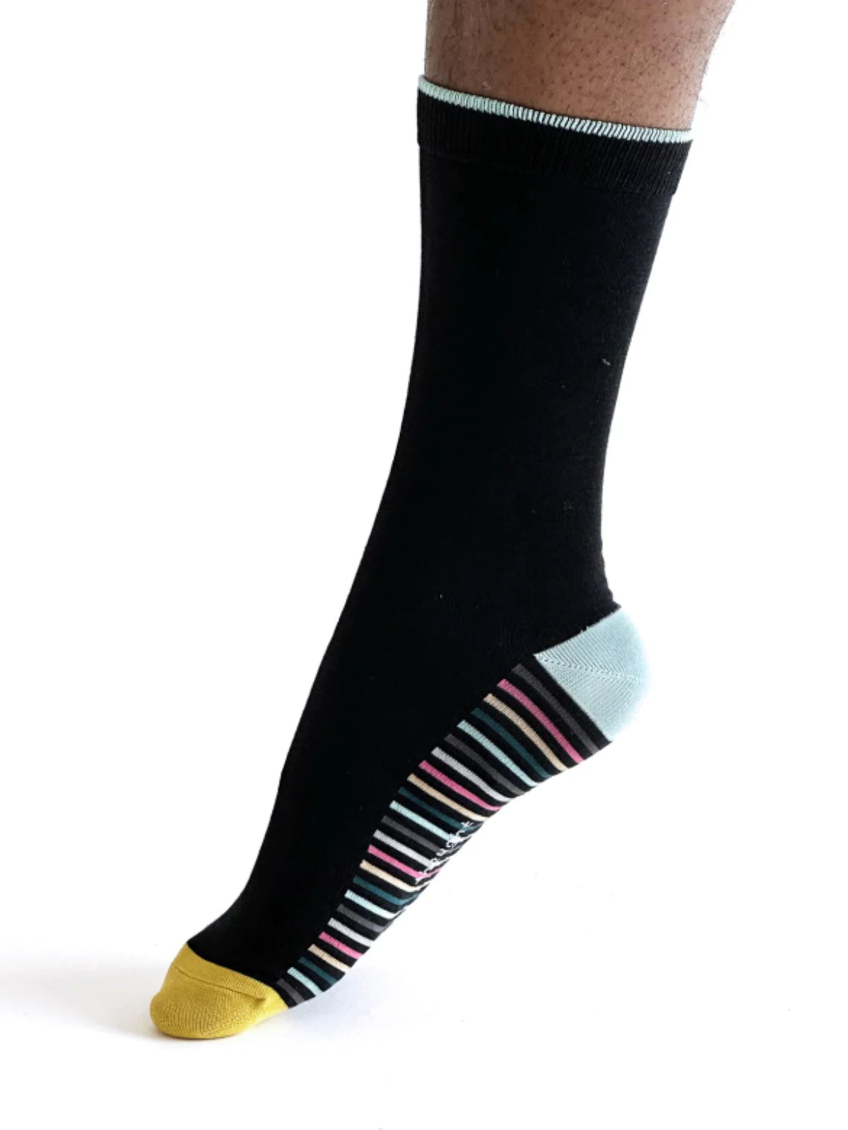 A new striped design that's sure to become a timeless classic. Crafted in an incredibly soft bamboo and organic cotton, these socks are breathable, naturally anti-bacterial and anti-fungal, so your feet (and the planet) stay happy and healthy.