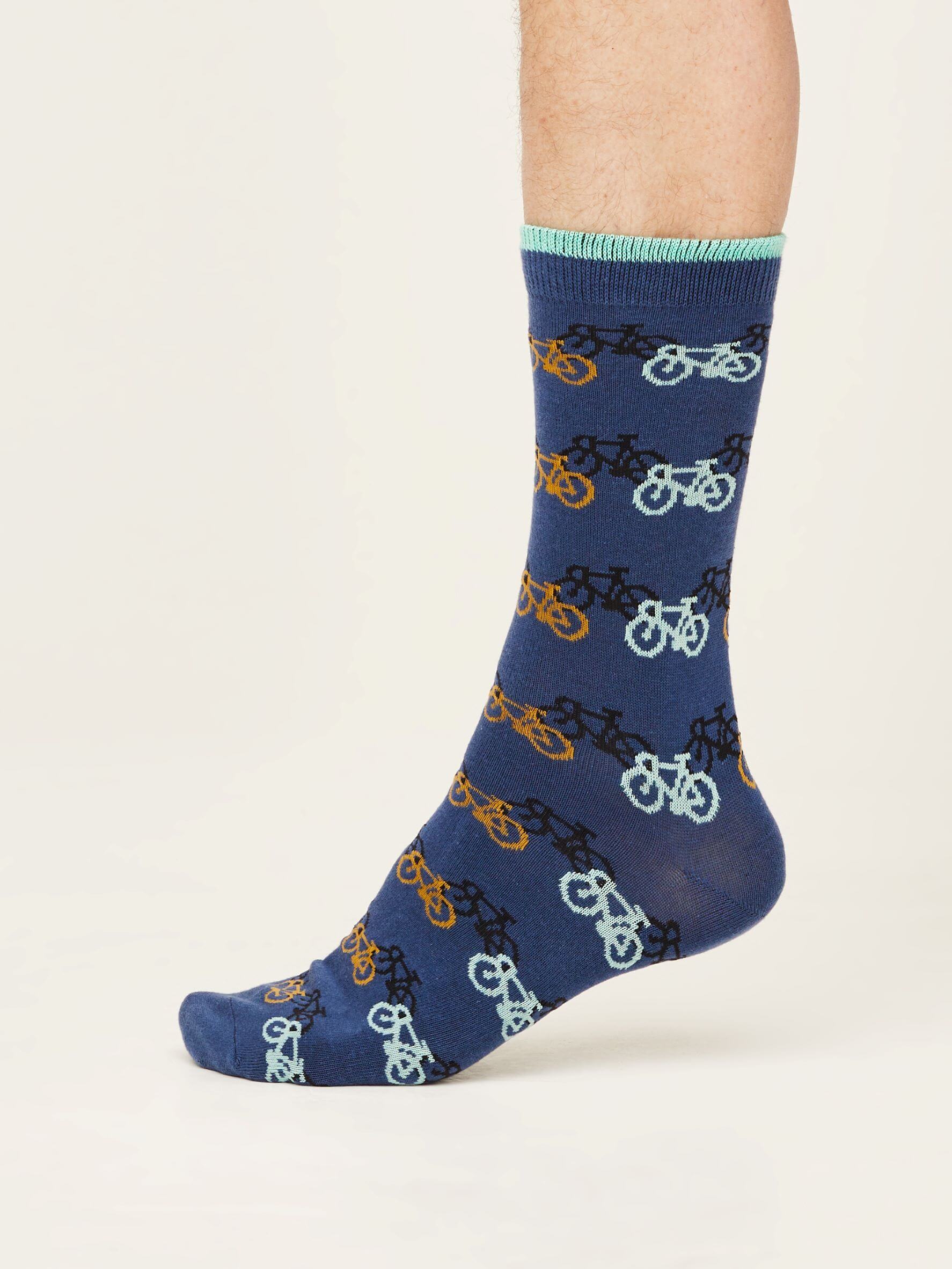 Bicycle Race Bamboo Socks in Mineral Blue by Thought, Size 7-11