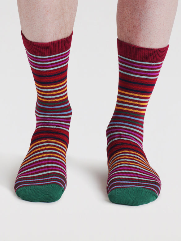 Haiden Striped Bamboo Socks in Elderberry by Thought, Size 7-11