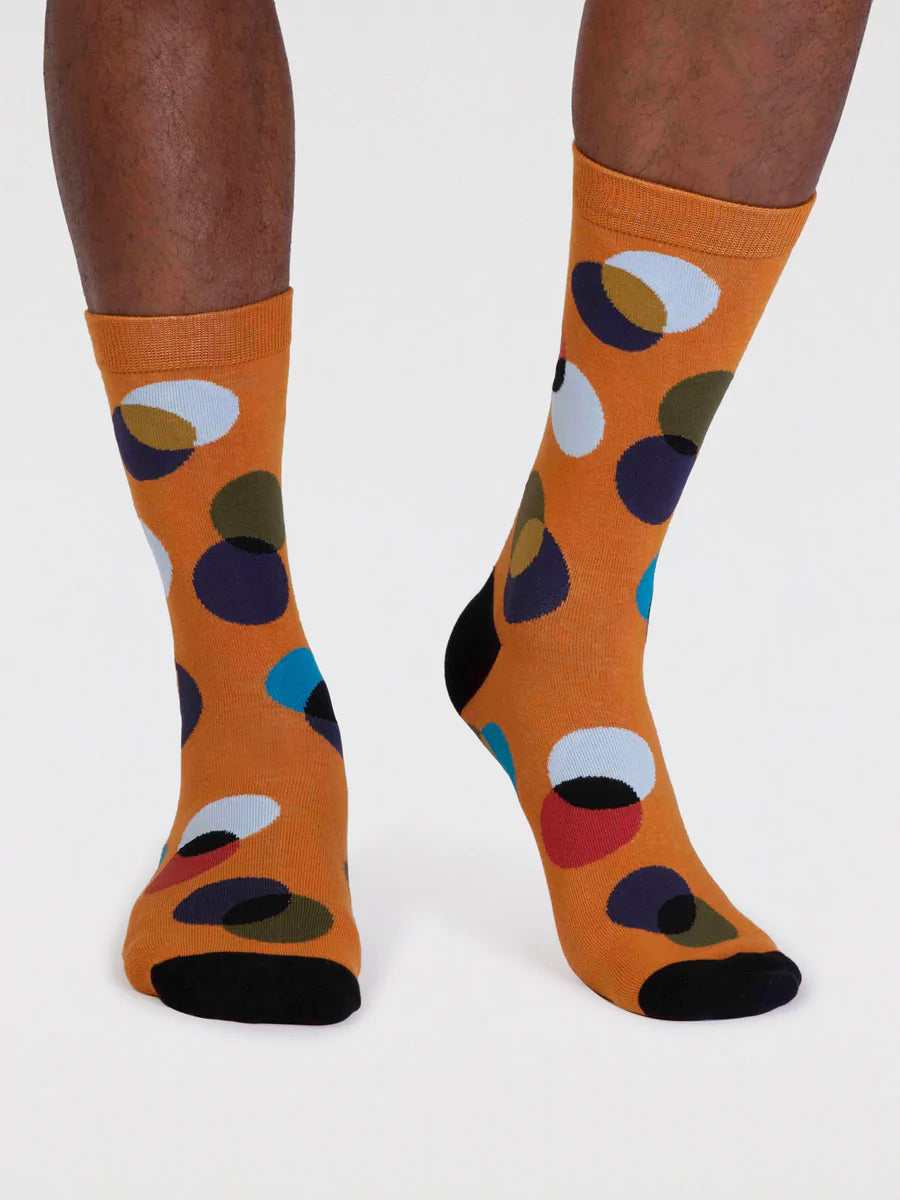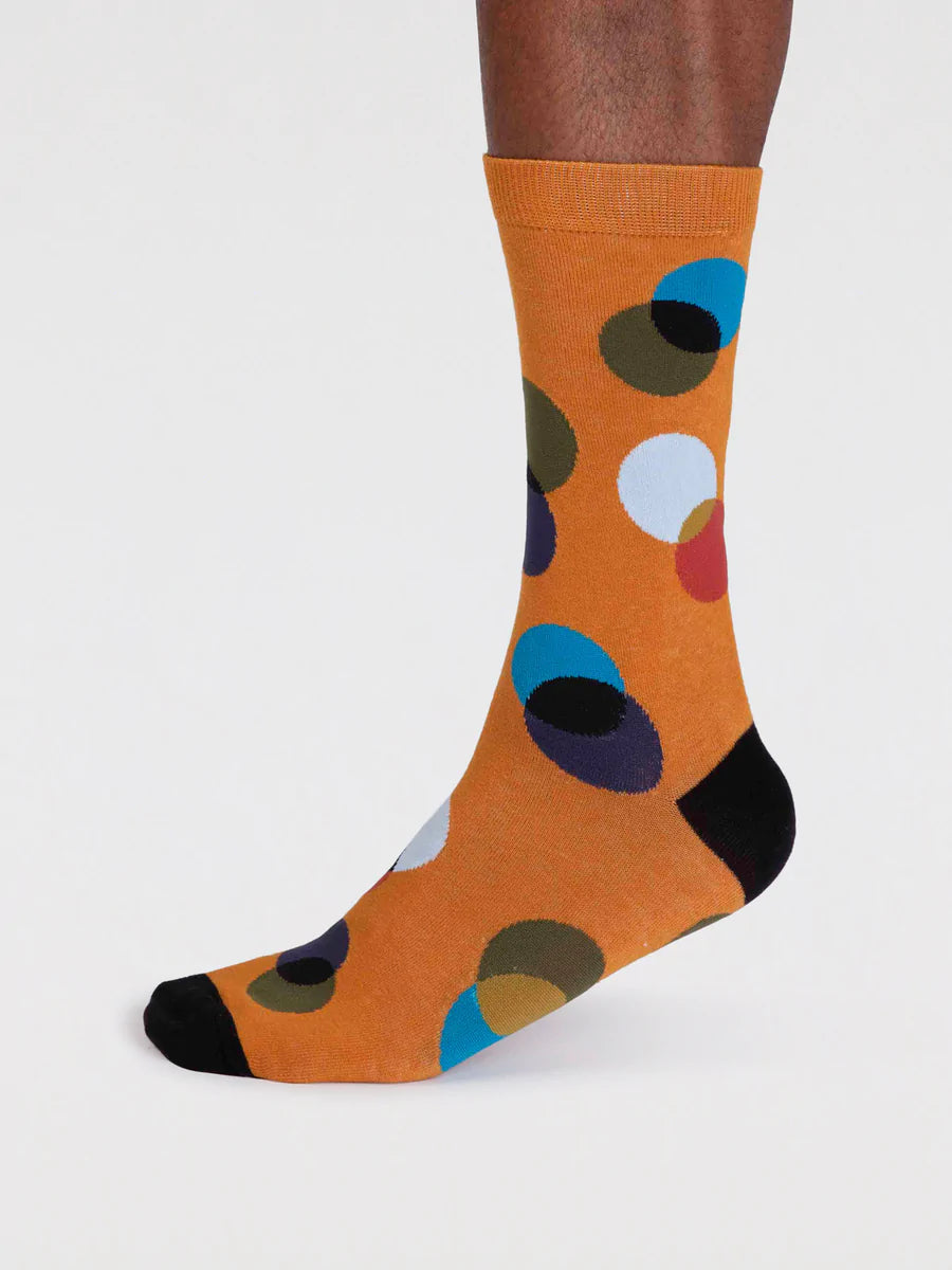 The perfect colourful socks with a contemporary circle design. Crafted in an incredibly soft and stretchy organic cotton, these sustainable socks are breathable, naturally anti-bacterial and anti-fungal, so your feet (and the planet) stay happy and healthy.