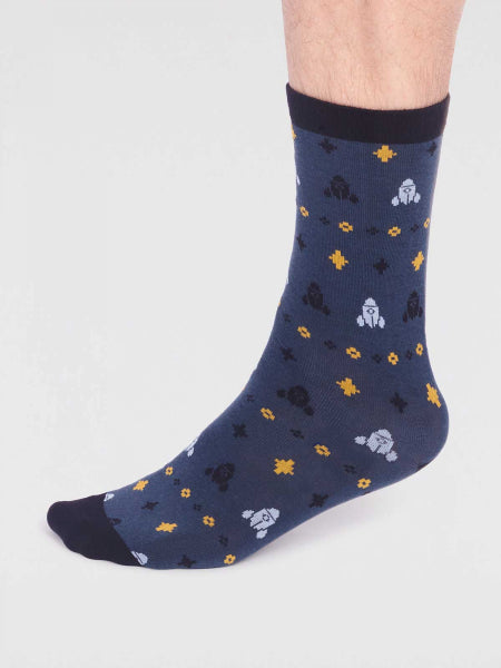 Salas Organic Cotton Rocket Socks in Slate Blue by Thought, Size 7-11