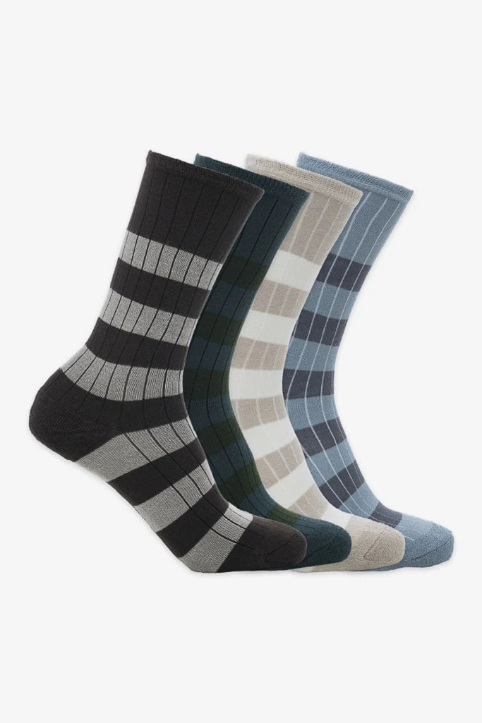 4 Pack Colebrooke Bamboo Striped Socks in Multicolours by BAM, Size 4-7