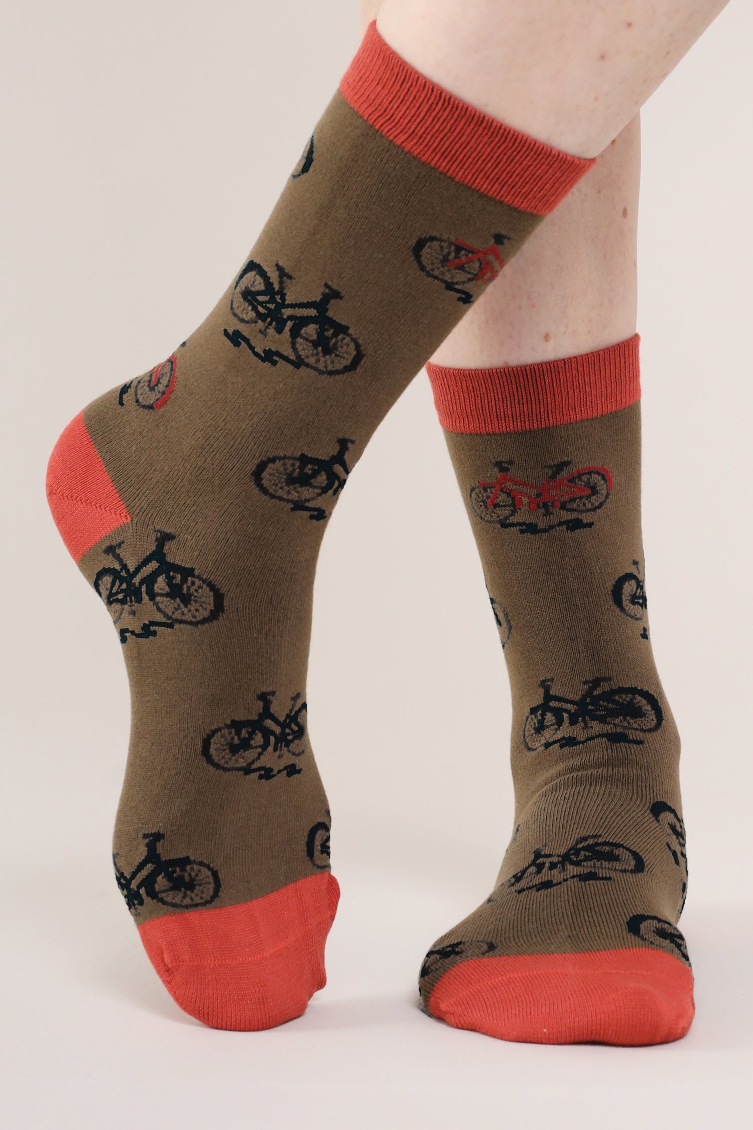 Bamboo Bicycle Socks in Khaki by Nomads, Size 7-11