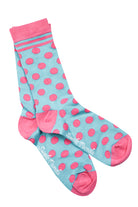 Blue and Pink Polka Dot Bamboo Socks by Swole Panda, Size 4-7