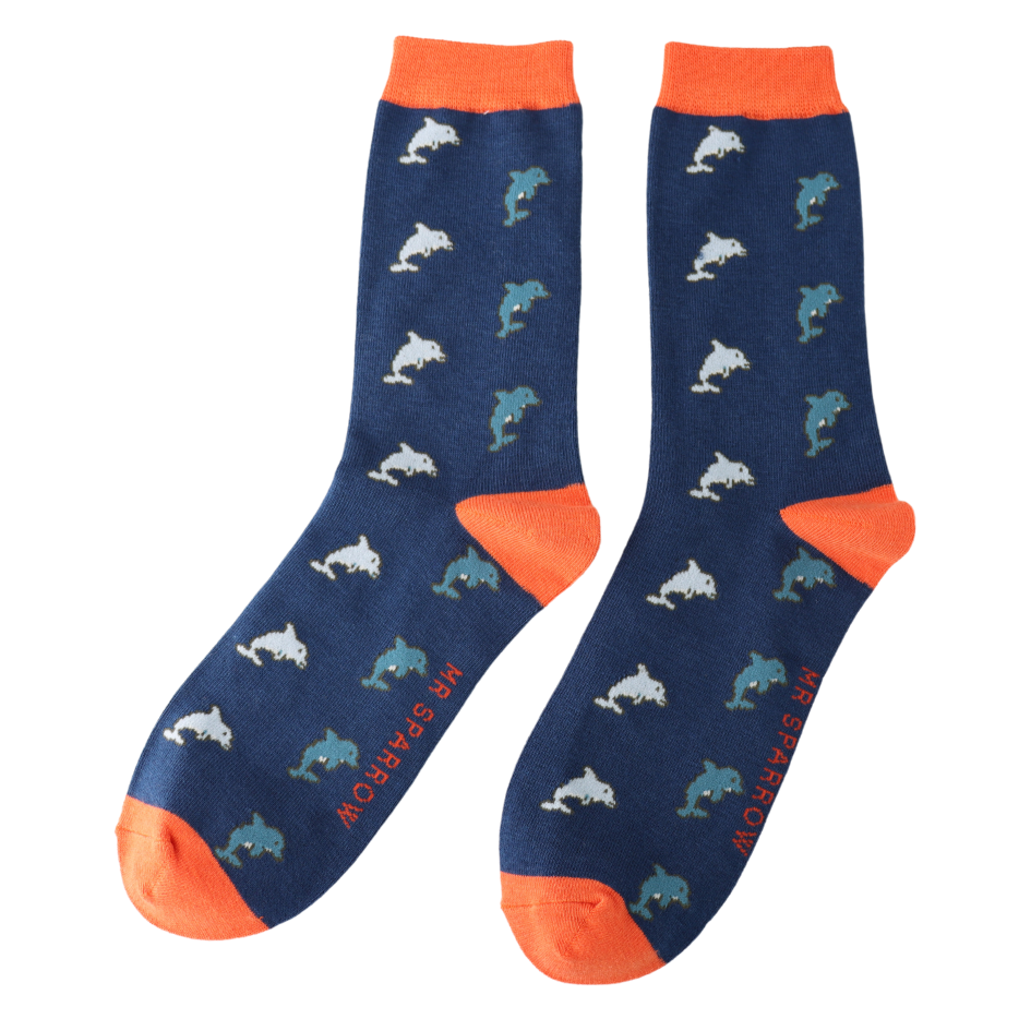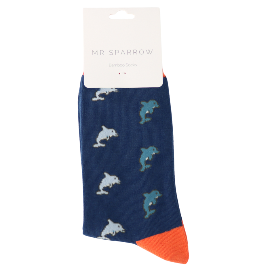 Dolphins Design Bamboo Socks in Navy by Mr Sparrow, Size UK 7-11
