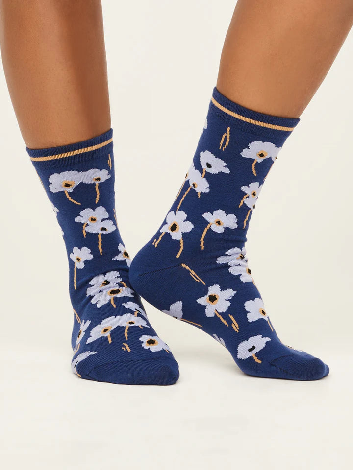 Organic Cotton Summer Poppies Socks in Twilight Blue by Thought, Size 4-7