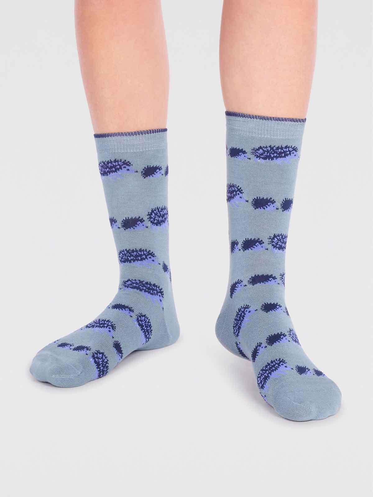 Hadley Bamboo Hedgehog Socks in Eucalyptus Blue by Thought, Size 4-7.