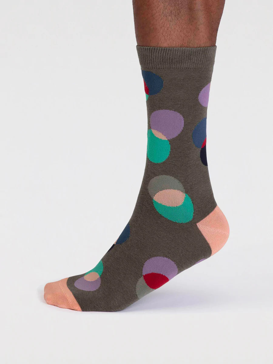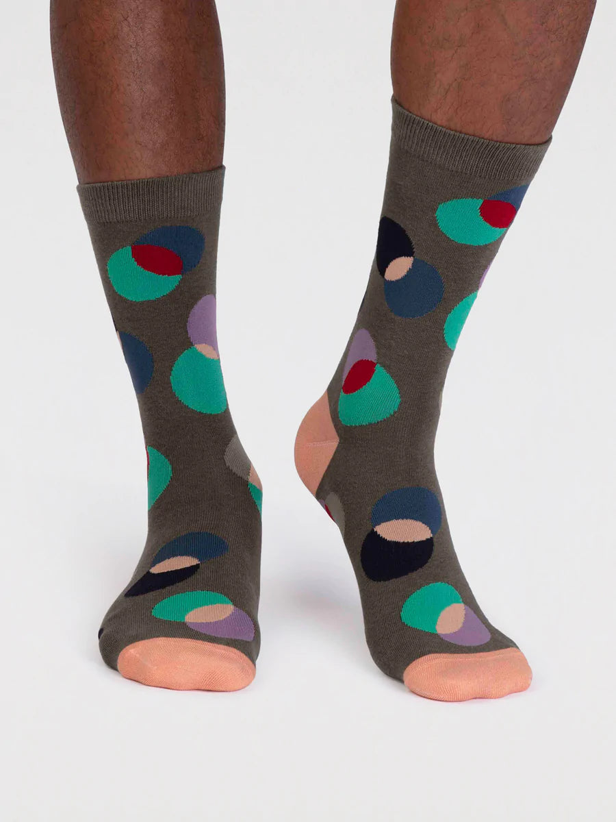 Laurent Organic Cotton Circle Socks in Cargo Green by Thought, Size 7-11