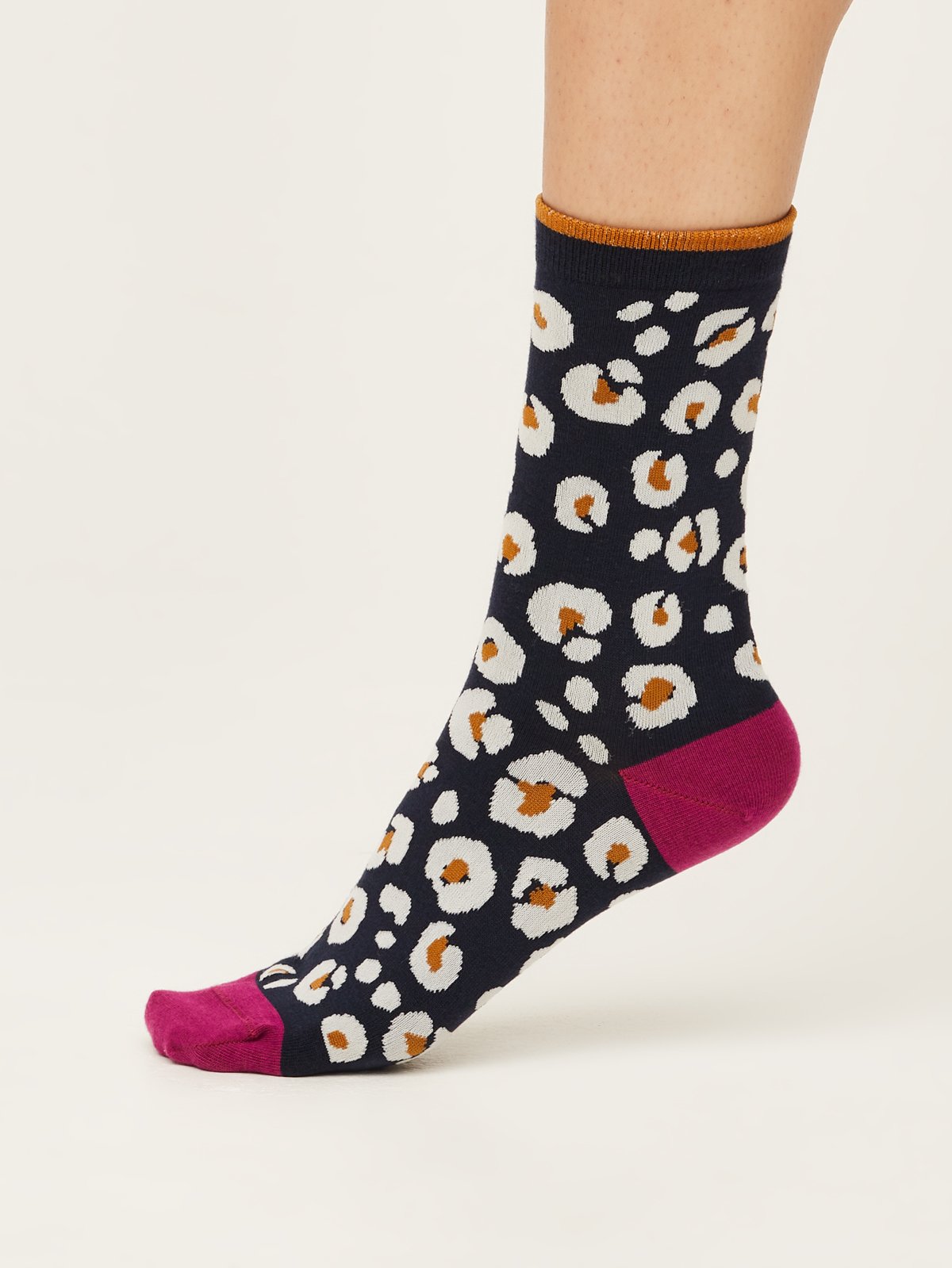 Leopard Print Organic Cotton Socks in Navy by Thought, Size 4-7