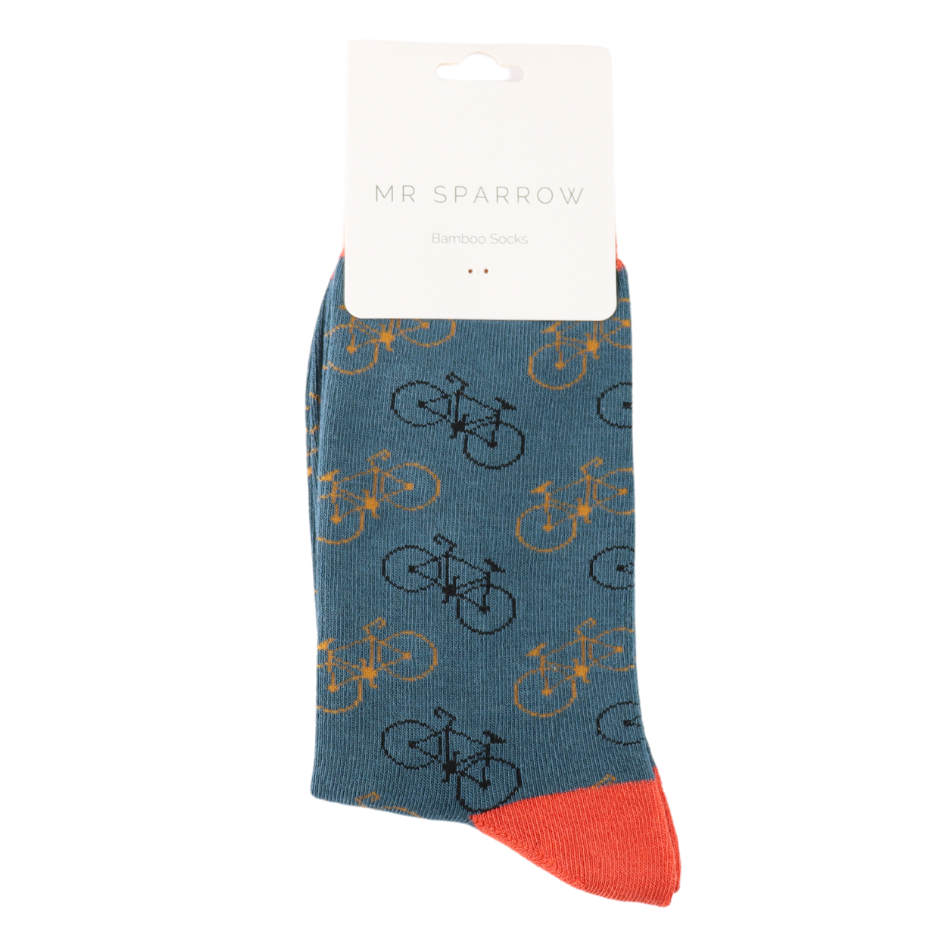 Little Bikes Print Bamboo Socks in Denim by Mr Sparrow, Size UK 7-11