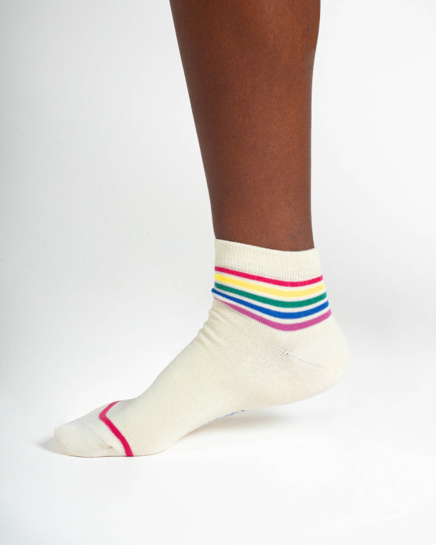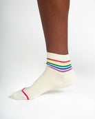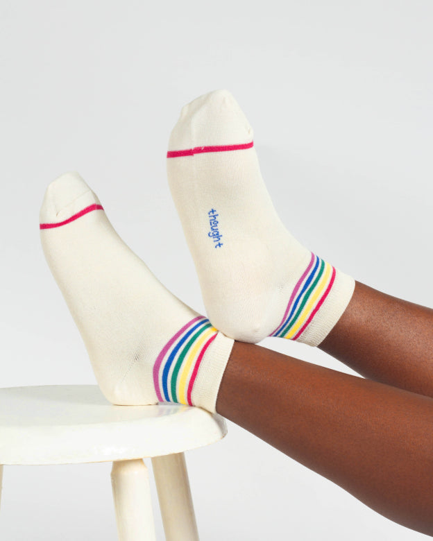 Rainbow Striped Tipped Short Bamboo Ankle Socks in Cream by Thought