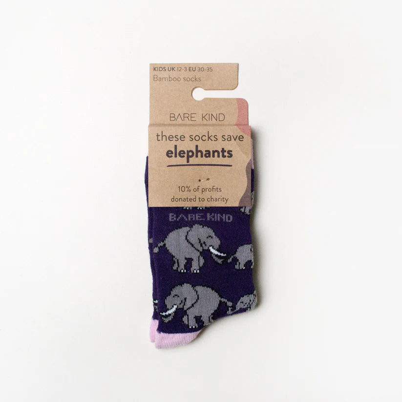 Kids Save the Elephants Bamboo Socks by Bare Kind