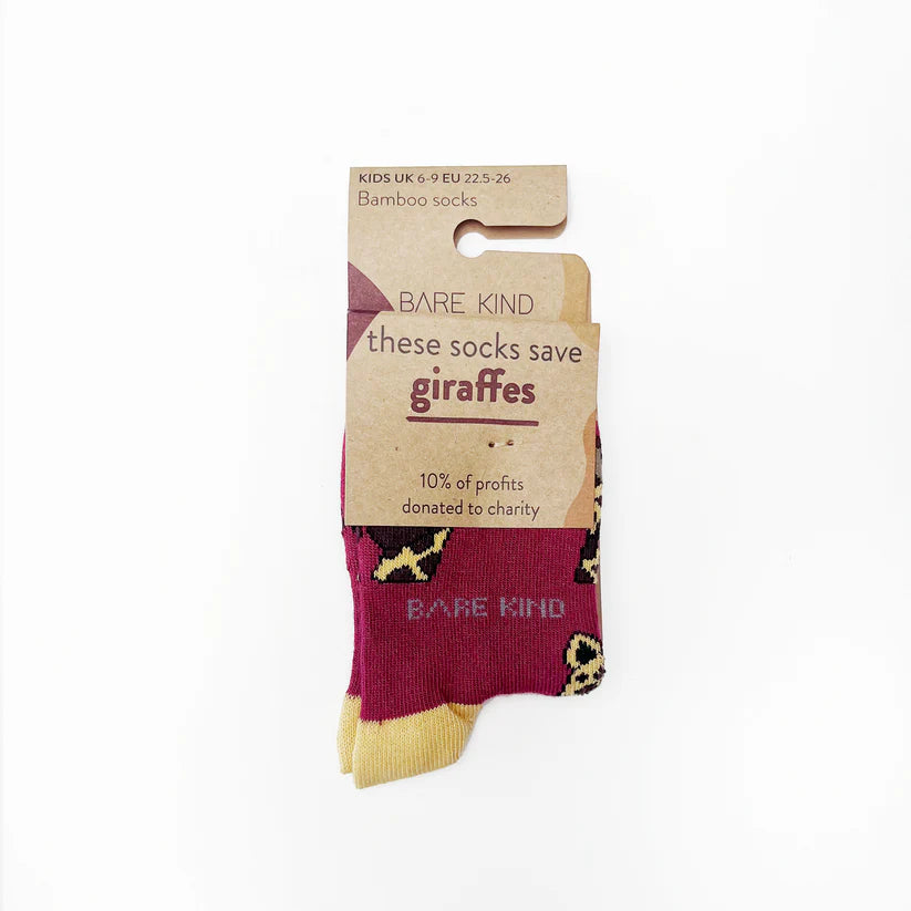 These socks help save endangered animals! 10% of the profits from the purchase of these socks from Bare Kind will be donated to The Giraffe Conservation Trust.