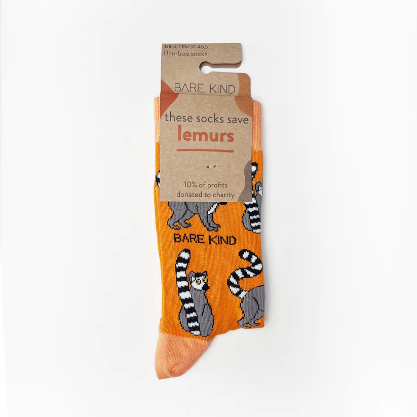 Bring out your wild side with our Save the Lemurs Bamboo Socks by Bare Kind! Made with bamboo fibers, these socks are comfortable and eco-friendly. Plus, a portion of the proceeds go towards protecting lemurs and their habitats. Show your love for these unique creatures and make a difference with every step.