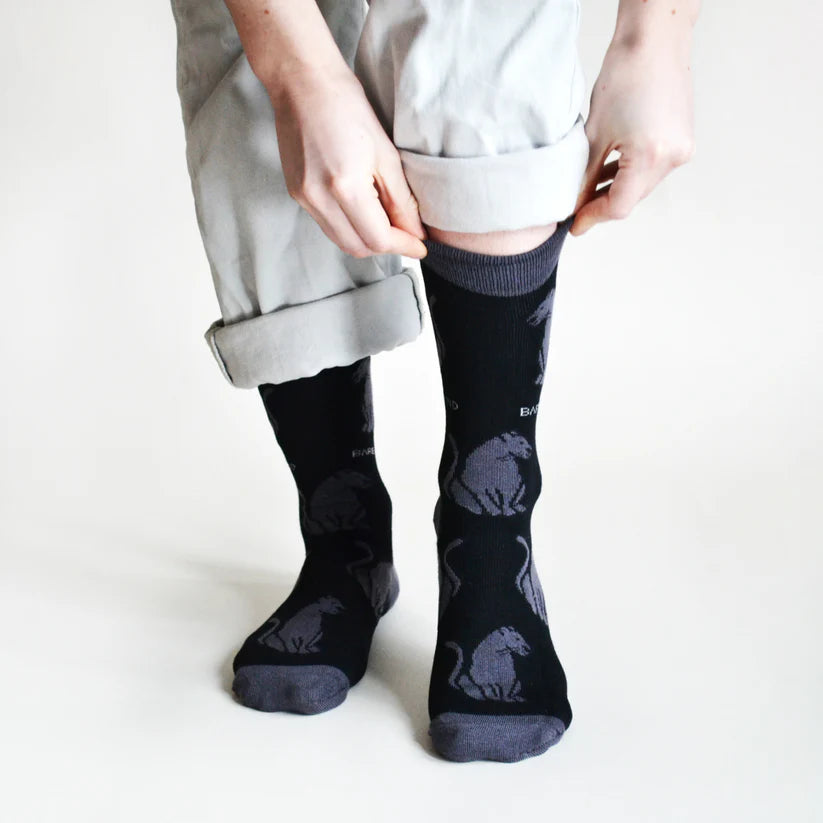 Join the movement and save the planet (and your feet!) with these playful Save the Panther Bamboo Socks. These socks are made for people who would like a looser fit around the ankle, as they have a more gentle grip around the top. Made by Bare Kind, these socks feature a fierce panther design, adding a hint of wildness to your everyday style. Show your support for wildlife conservation and stay comfortable all day long!