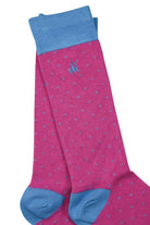These spotted Bamboo Socks by Swole Panda are a wonderful combination of light blue and bright pink. A bright pair of bamboo socks that will be sure to lighten up any dull outfit. They are knitted from a unique breathable bamboo blend creating an unbelievably smooth snug feel. Featuring a reinforced heel and toe as well as hand linked seams for added comfort.