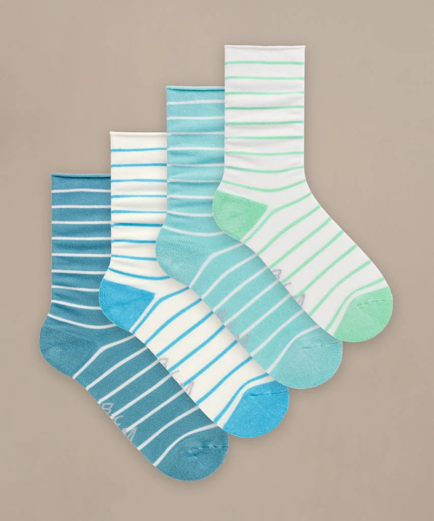 Bamboo Soft Top Striped Socks in Green (4 Pairs) by BAM