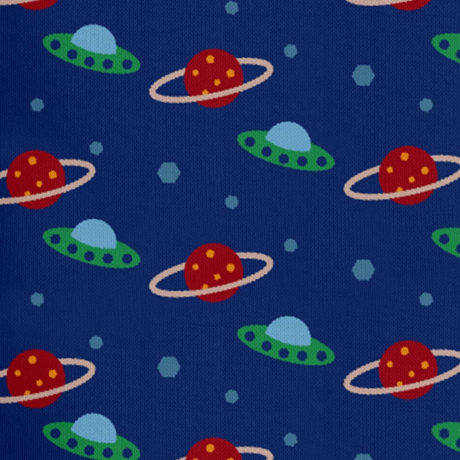 Blue Bamboo Socks with Spaceships and Planets by Red Fraktion
