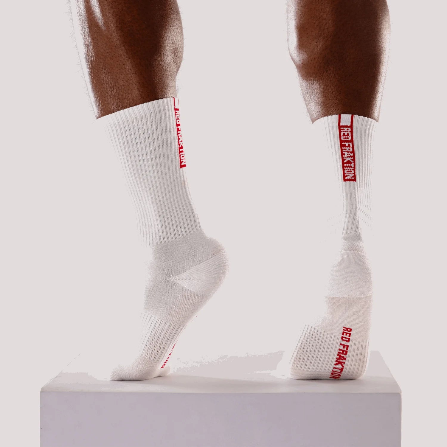 Introducing new white socks by Red Fraktion, the perfect addition to your fitness wardrobe or casual everyday wear. Made with high-quality materials and advanced technology, these socks are designed to provide ultimate comfort and style.