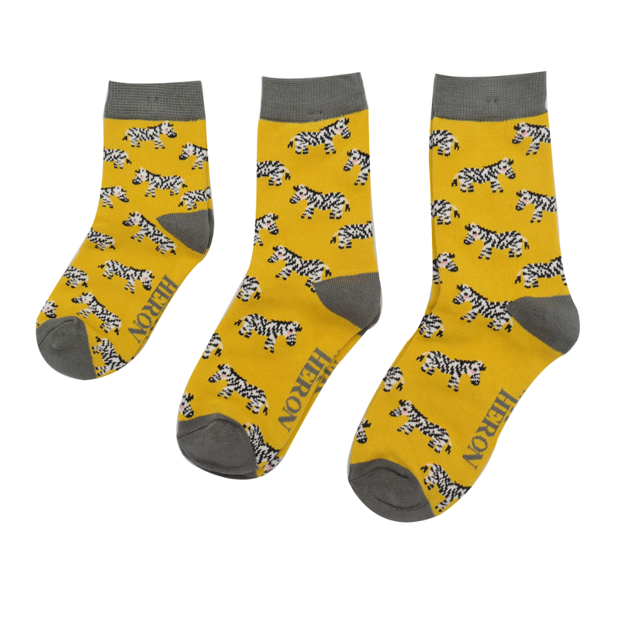 Boys Zebra Bamboo Socks in Yellow by Mr Heron