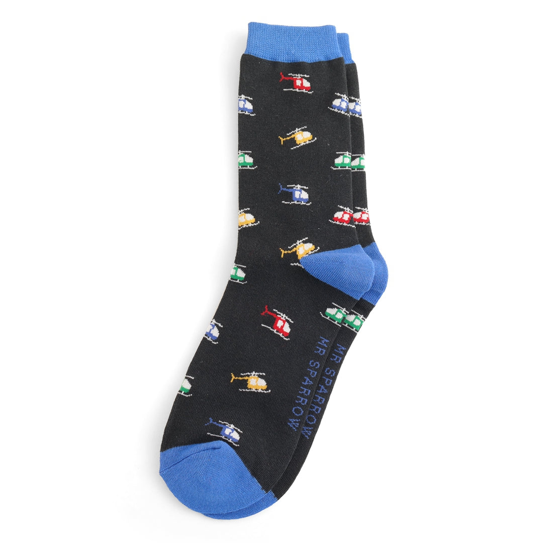 Helicopters Bamboo Socks in Black by Mr Sparrow, Size UK 7-11