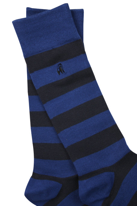 Charcoal and Navy Striped Soft Top Comfort Cuff Bamboo Socks by Swole Panda, Size 7-11
