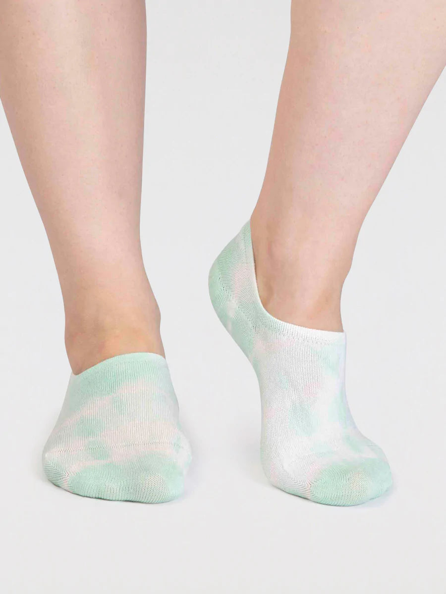 Anca Bamboo Tie Dye No-Show Socks in Green by Thought, Size 4-7